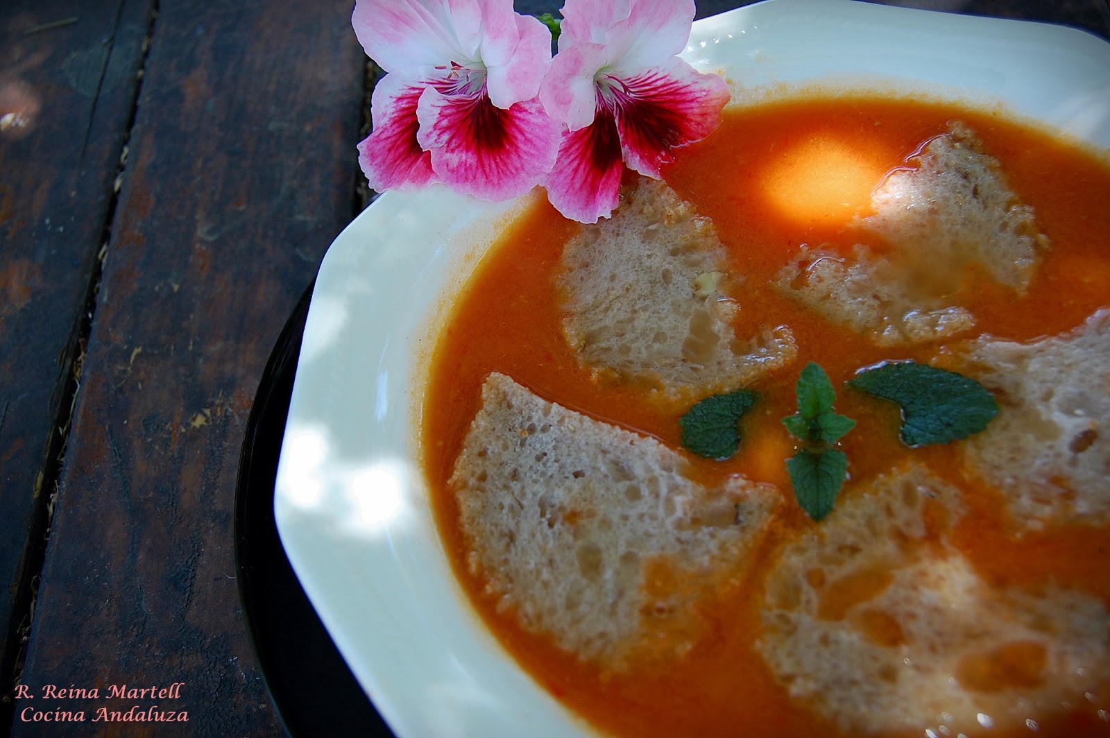 Nos toca todo un clásico; la sopa de tomate de nuestras abuelas. Mi madre siempre la hace con almejas, aunque en esta receta me he limitado a exponer la más generalizada de nuestra geografía andaluza, ya tocaran otras sopas de tomate que haberla las aíla. Aunque en mí recorrido como cocinero, me he encontrado multitud de variantes y lo curioso es que dicha sopa se adapta, tanto al pescado como a la carne, incluso al queso y las verduras de cualquier índole. Por lo tanto, la versatilidad de la sopa es inmensa, siendo capaz de consumirse tanto en frío como en caliente siendo el gazpacho no es más que una variante de más de la misma.